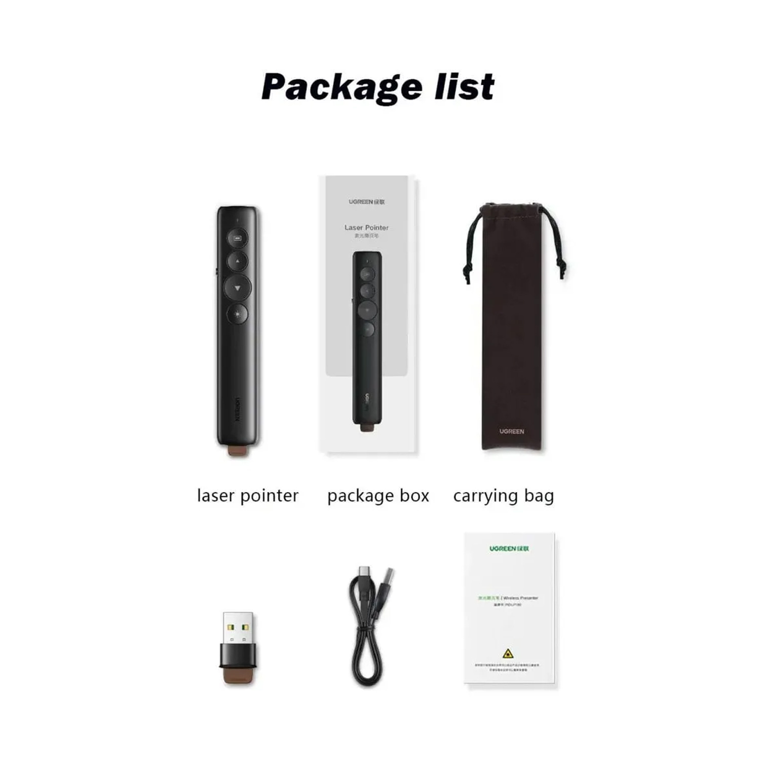 Puntero Presentador Laser Ugreen 2.4 GHz R 200M Control R 100M Black 50654