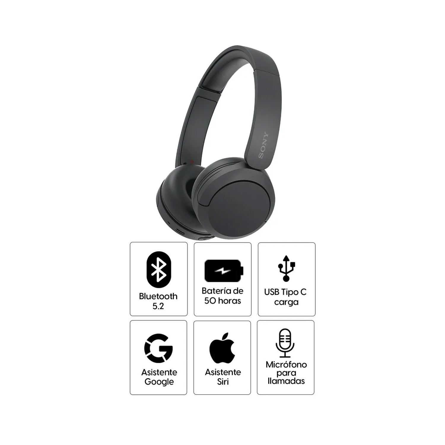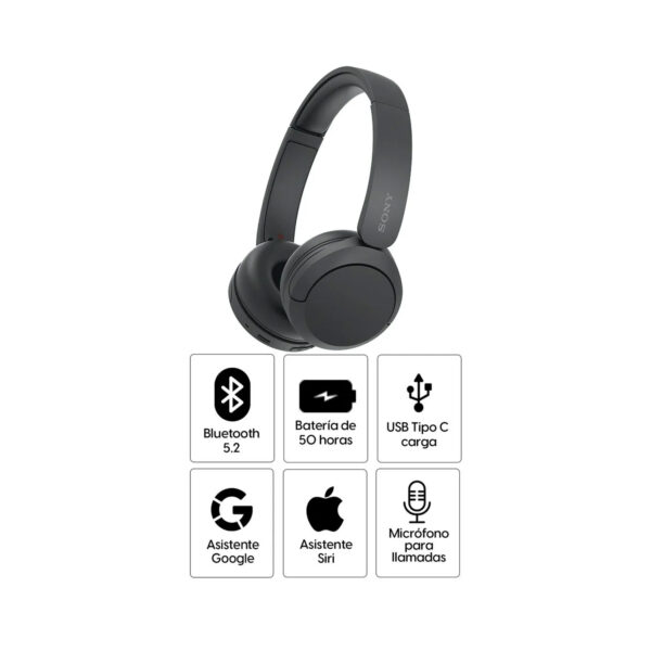 Los Sony WHCH520 Bluetooth en color negro ofrecen un equilibrio ideal entre calidad de sonido, comodidad y practicidad para el día a día. Con un diseño ligero y moderno, integran funciones inteligentes que mejoran la experiencia de escucha, ya sea en casa, en la oficina o en movimiento.