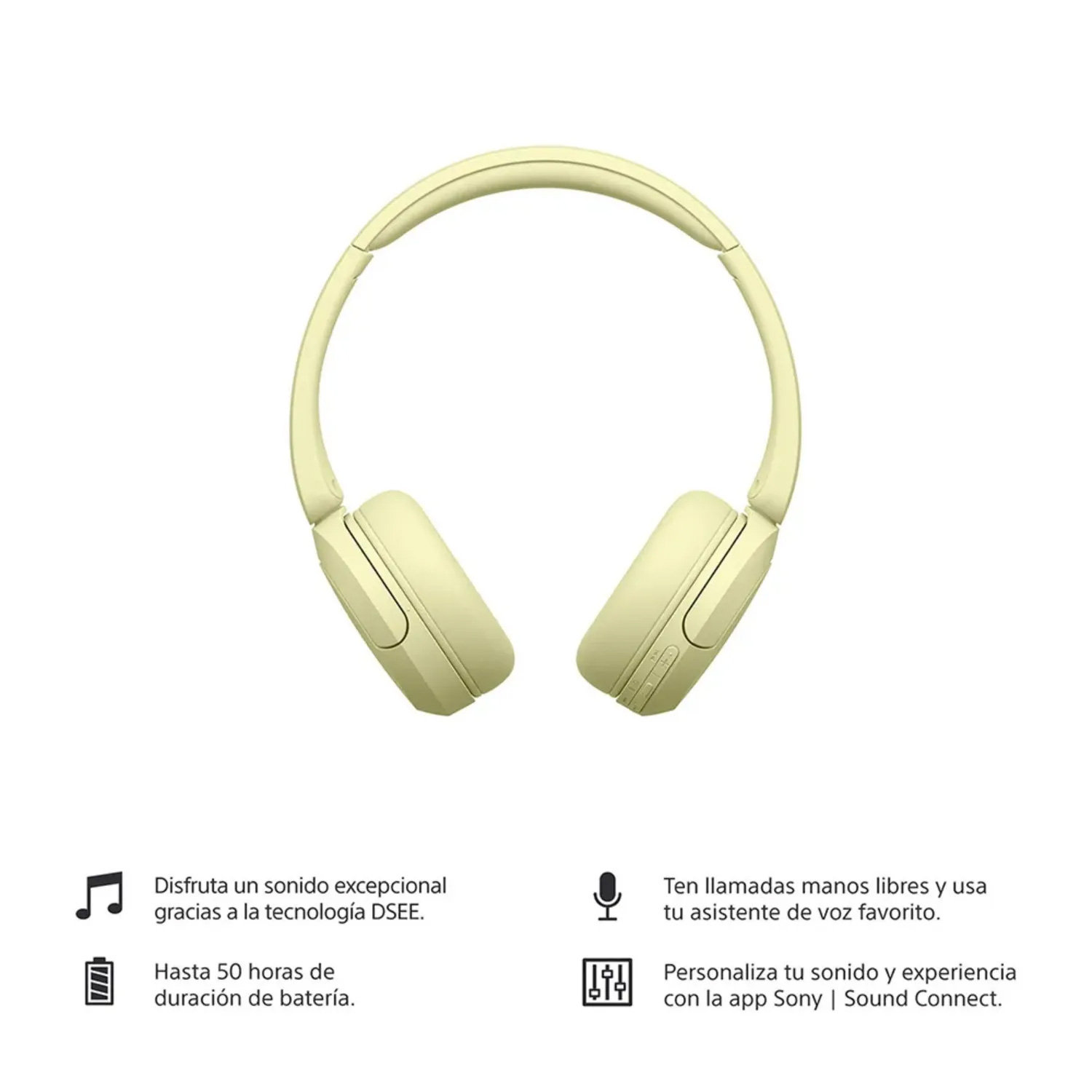 Los Sony WHCH520 Amarillo combinan diseño juvenil, comodidad y gran calidad de sonido en un solo dispositivo. Ideales para quienes buscan audífonos inalámbricos con estilo y un rendimiento confiable, ofrecen una experiencia auditiva inmersiva en cualquier lugar.