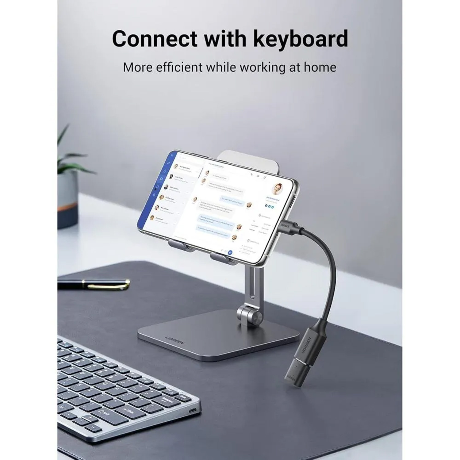 El cable adaptador UGREEN US154 permite conectar dispositivos con puerto USB-C a periféricos o accesorios con conector USB-A, brindando compatibilidad universal y transferencia de datos de alta velocidad. Su diseño compacto y materiales de calidad garantizan una conexión estable, segura y duradera, ideal para laptops, tablets y smartphones con puertos USB-C.