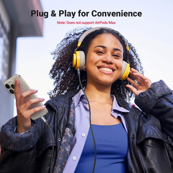 UGREEN cable usb c a jack 3.5 mm soporta hasta 10.000 inserciones y 10.000 dobleces, puedes enchufarlo y desenchufarlo sin ninguna preocupación. La funda de nylon trenzado es extremadamente resistente, lo que proporciona una protección adicional para evitar daños y desgaste. La tapa de aluminio del extremo resiste el calor y la corrosión y garantiza una larga vida útil.