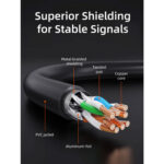Fabricado con conductores de cobre libre de oxígeno (OFC) y blindaje doble (S/FTP) que mejora la estabilidad de la señal y minimiza la interferencia electromagnética.