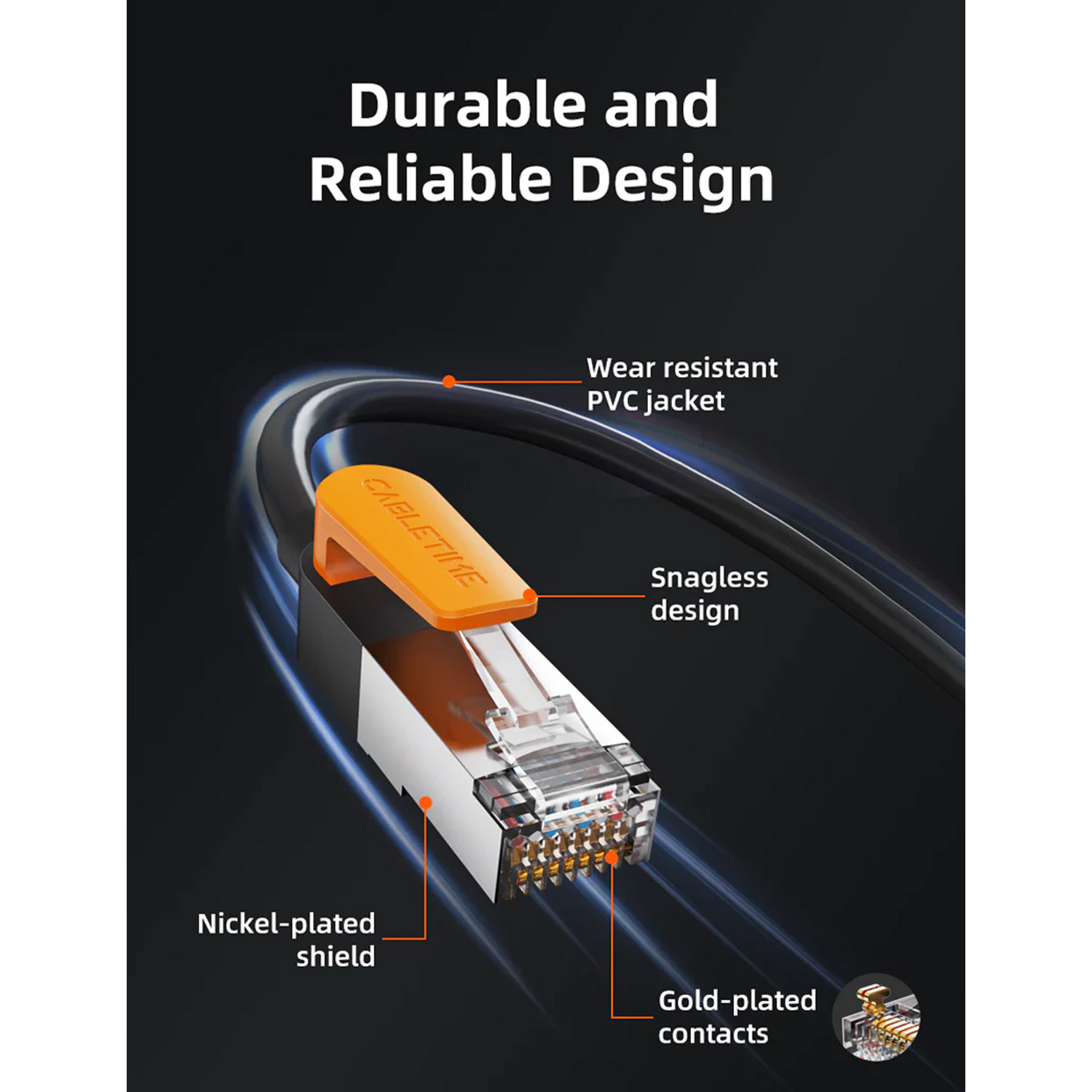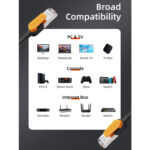 Fabricado con conductor de cobre revestido (CCA) de calibre 26 AWG, chaqueta de PVC resistente y conectores RJ45 chapados en oro para mejor conductividad y mayor vida útil.