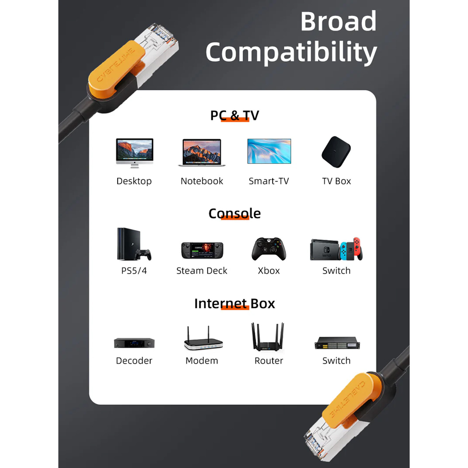 Su diseño estándar con conectores RJ45 es compatible con routers, switches, consolas, laptops, PCs y otros dispositivos de red.