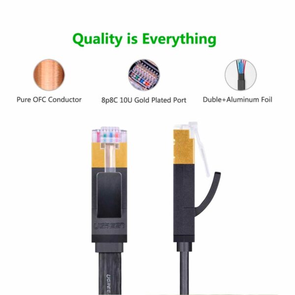 Cable Ugreen Ethernet Plano RJ45 Cat 7 10 Gbps 3m Negro NW106 – 11262