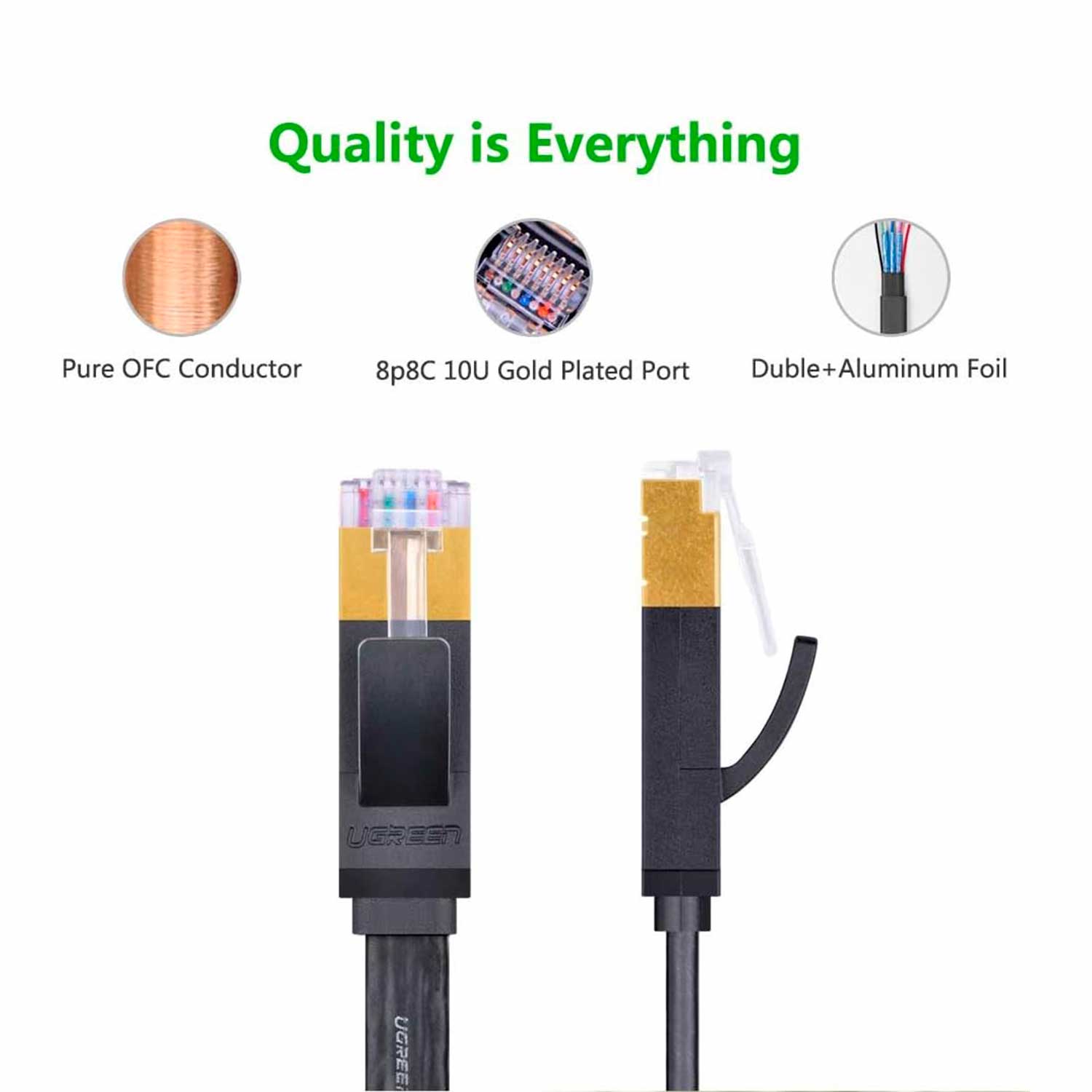Diseño plano flexible: el cable Ethernet Cat 7 de alta velocidad UGREEN adopta un diseño plano y delgado único, que permite una instalación más limpia y segura. Ya sea que desee instalarlo debajo de la puerta, a través de la ventana o escondido debajo de la alfombra, se puede hacer muy fácilmente. Es muy adecuado para cableado interior.