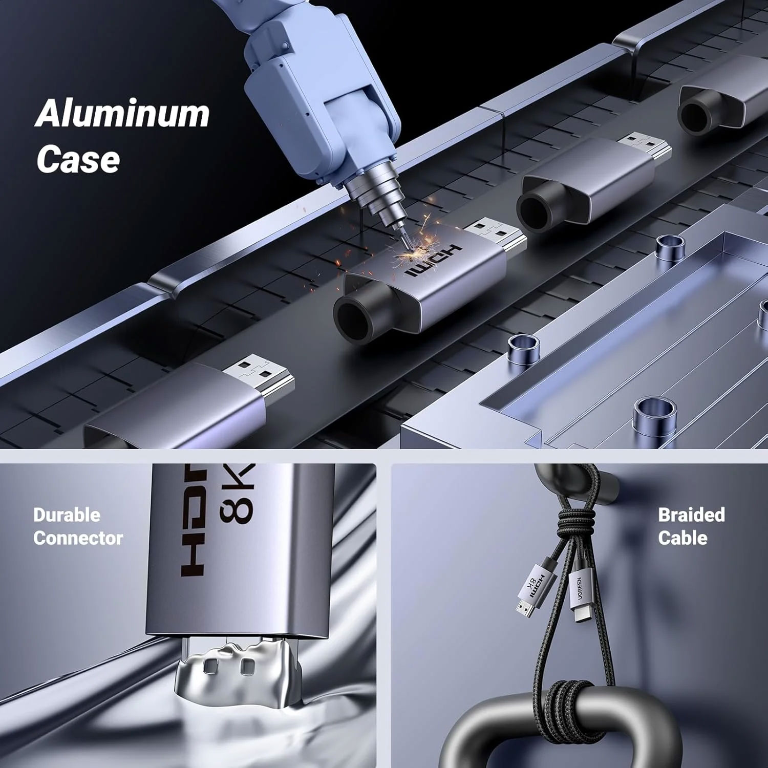El cable HDMI UGREEN HD171 garantiza una transmisión estable y fluida para contenido en ultra alta definición, ideal para monitores, televisores y consolas de última generación. Su diseño trenzado brinda durabilidad superior y resistencia al desgaste.