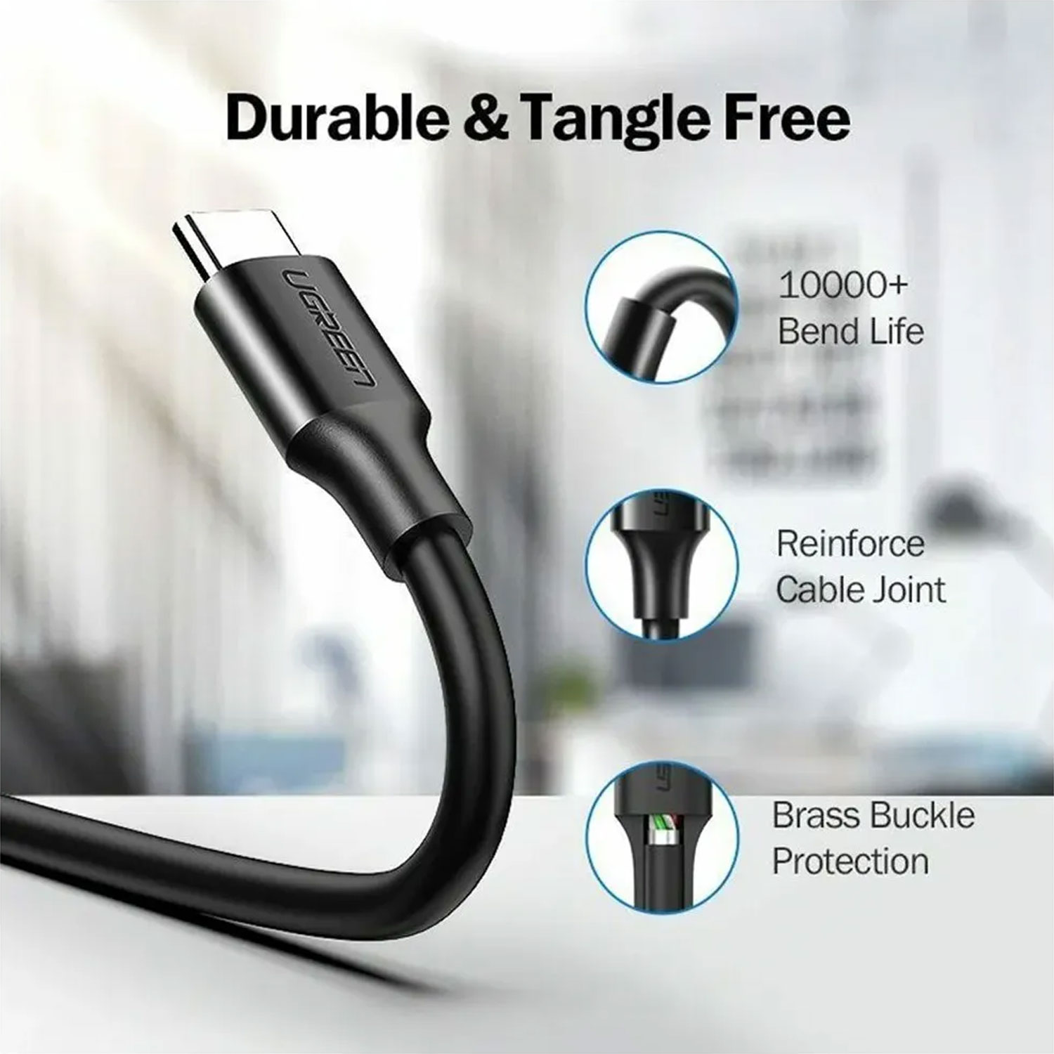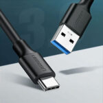El cable UGREEN USB 3.0 A a USB-C permite transferencia de datos rápida y carga eficiente entre dispositivos compatibles. Con 1 metro de longitud y conectores de alta calidad, garantiza rendimiento estable y durabilidad para uso diario en computadoras, laptops y dispositivos USB-C.