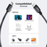 Compatible con todos los dispositivos Apple con puerto Lightning, incluyendo iPhone, iPad y iPod, para carga segura y transferencia de datos confiable.