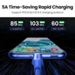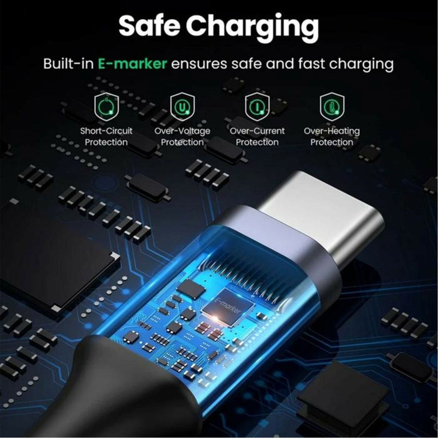 El cable UGREEN USB-C trenzado permite carga rápida y transferencia de datos eficiente entre dispositivos USB-C, soportando hasta 100W de potencia y 5A de corriente. Su diseño trenzado garantiza durabilidad y resistencia al desgaste en el uso diario.