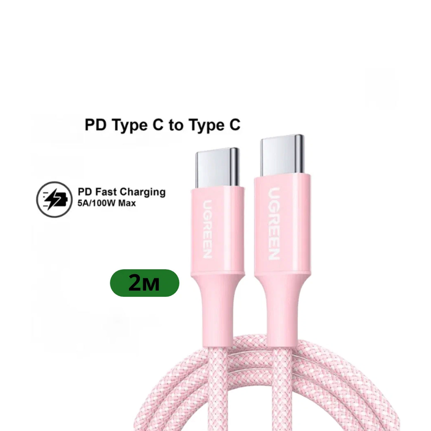 Cable Ugreen USB-C a USB-C PD Fast Charging Trenzado 2M 100W Rosa L502 65252
