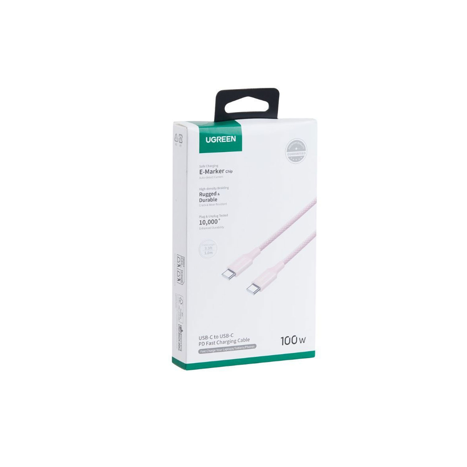 El cable UGREEN USB-C trenzado permite carga rápida y transferencia de datos eficiente entre dispositivos USB-C, soportando hasta 100W de potencia y 5A de corriente. Su diseño trenzado garantiza durabilidad y resistencia al desgaste en el uso diario.