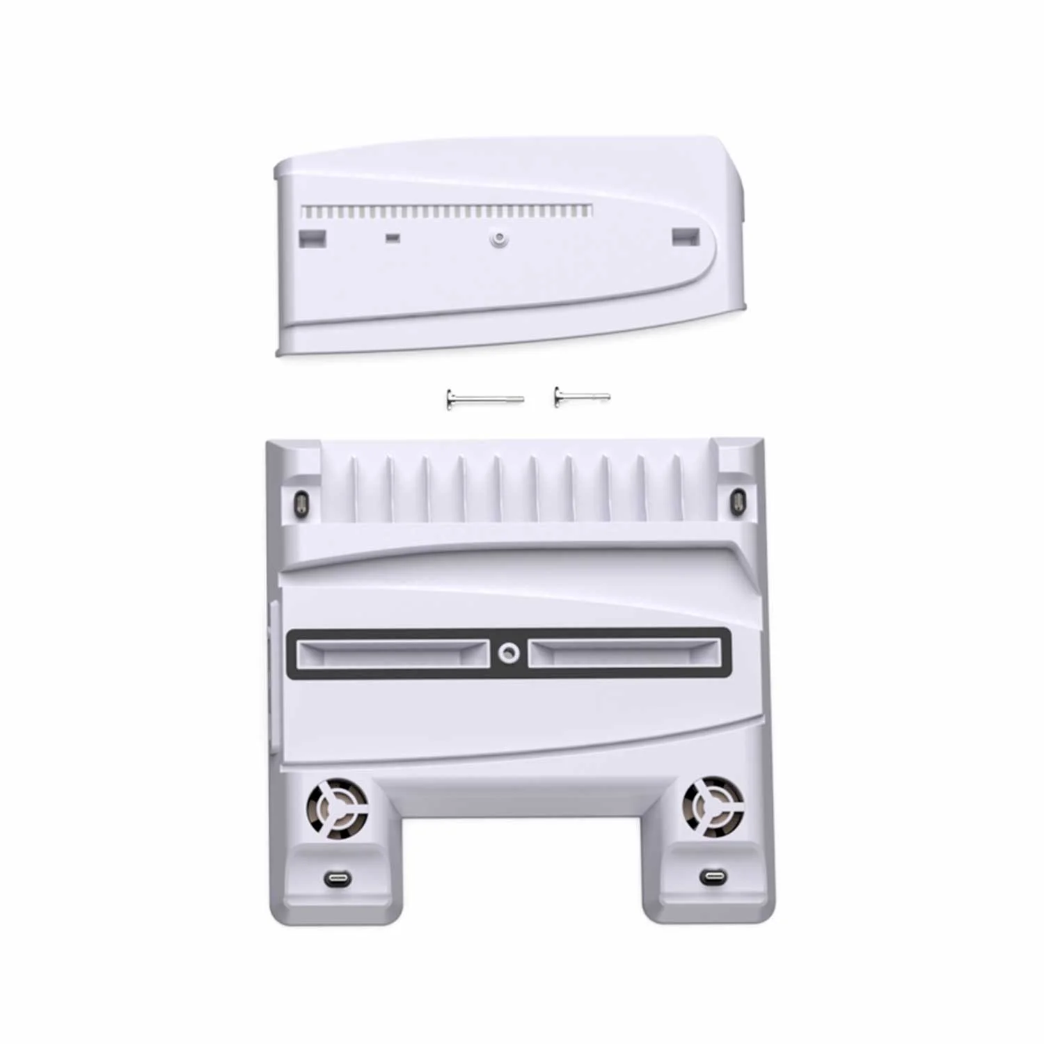 El cable de datos tipo Y integrado se alimenta directamente de los puertos USB 3.0 de la PS5. Admite transmisión de datos por USB 2.0, lo que elimina la necesidad de una fuente de alimentación adicional. El soporte cuenta con un puerto USB 2.0 tipo A en el lateral para conectar y cargar el mando de la PS5. Proporciona una salida de alimentación de 5 V CC.