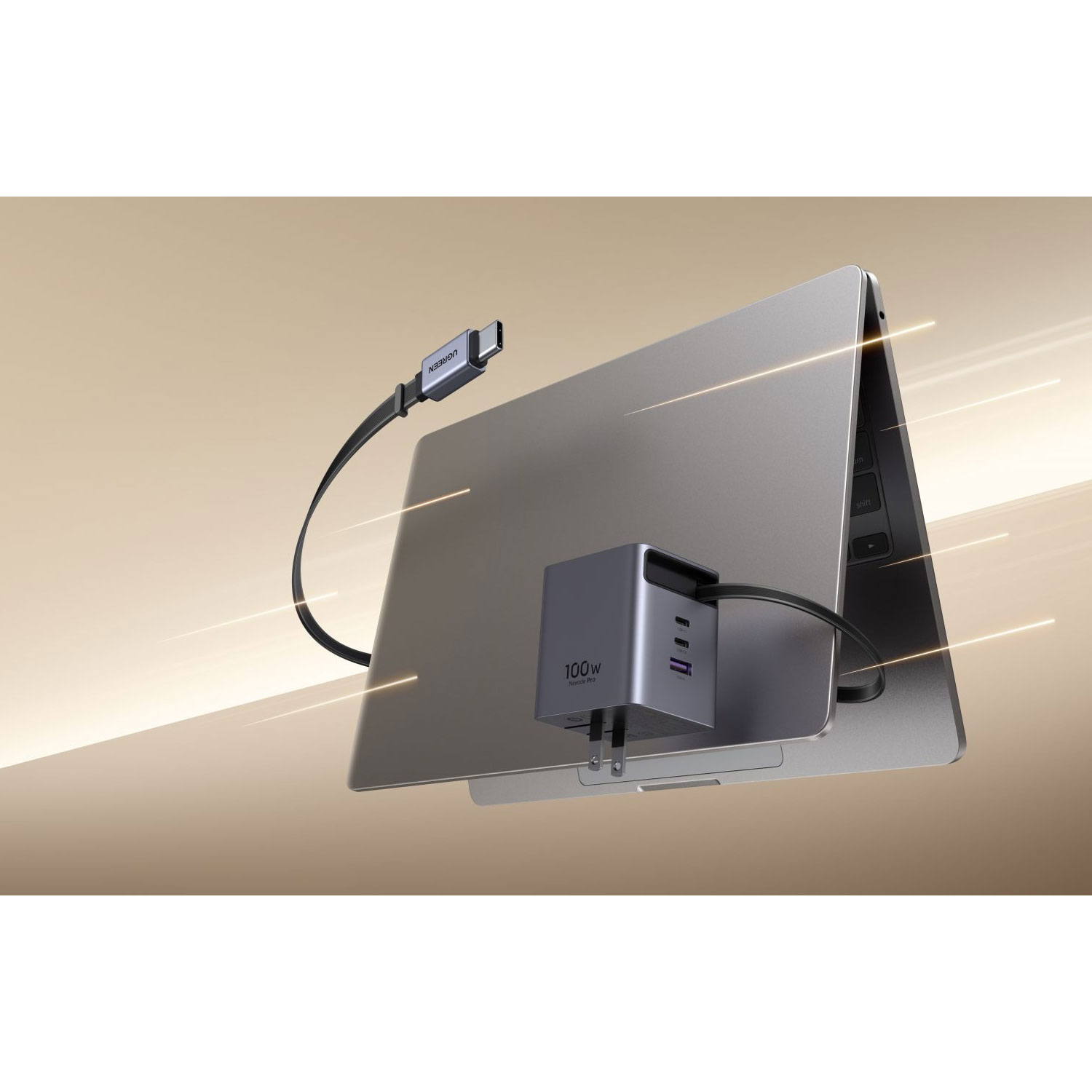 Cargador Ugreen 100W Gan Con Cable Retractil USB-C Carga Rapida X616-65827 Gris