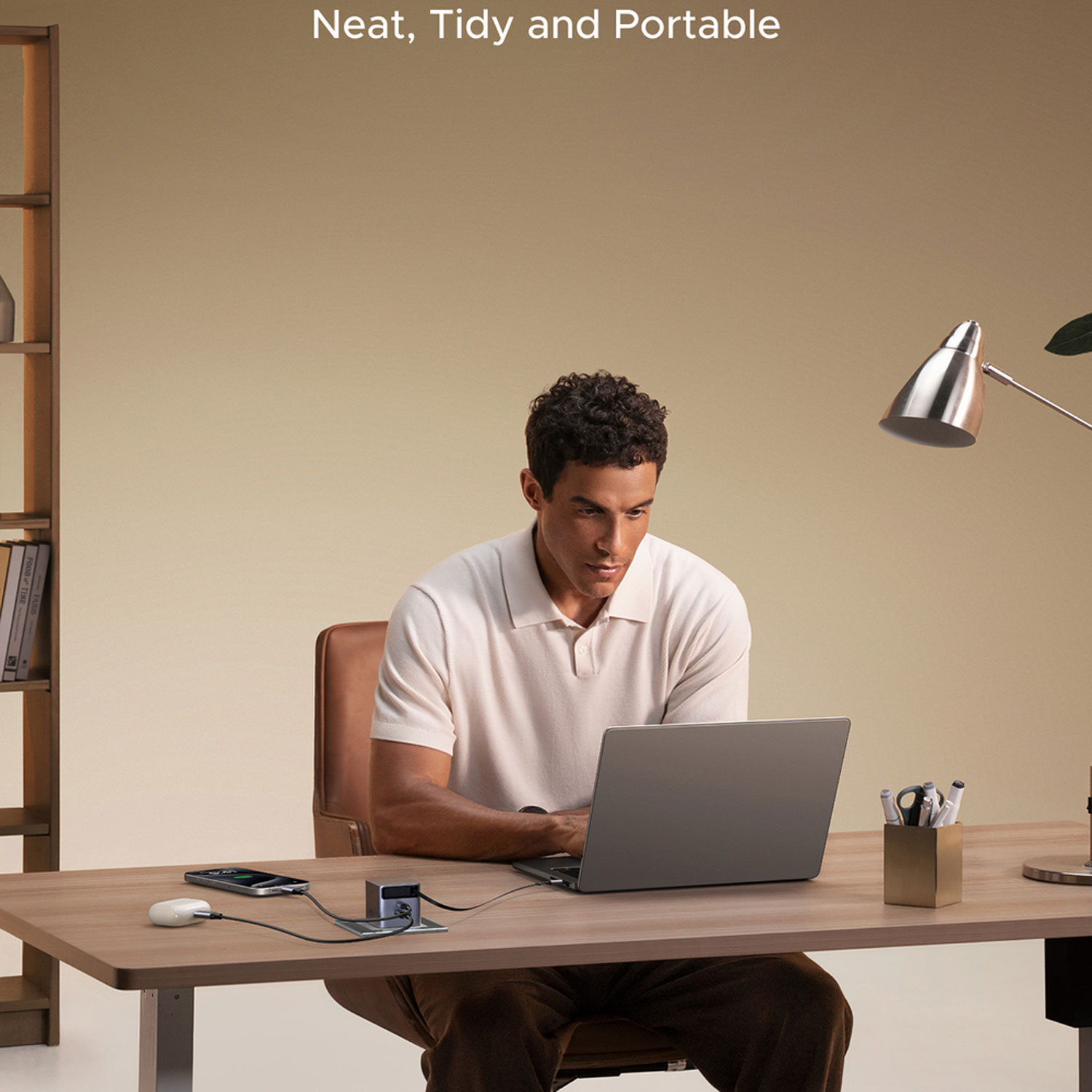 El cargador UGREEN 45W GaN con cable retráctil permite cargar smartphones, tablets y otros dispositivos USB de manera rápida y segura. Su diseño compacto y cable retráctil facilita el uso y transporte, ideal para hogar, oficina o viajes.