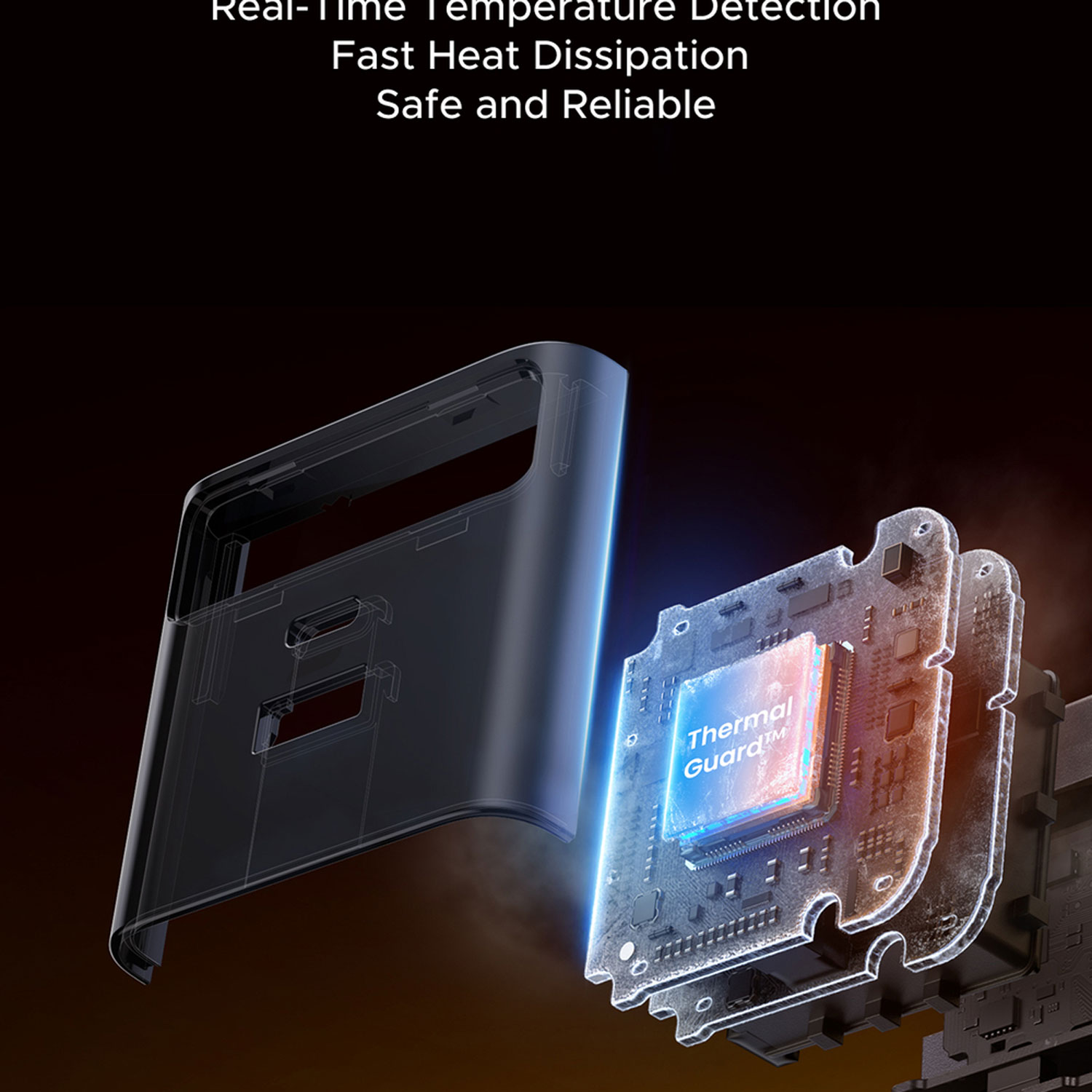 Soporta carga rápida de hasta 45W, adaptando automáticamente la potencia según el dispositivo conectado, garantizando eficiencia y protección contra sobrecorriente, sobretensión y sobrecalentamiento.