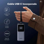Incluye un cable integrado, eliminando la necesidad de llevar cables sueltos y facilitando la conexión inmediata a tus dispositivos. Esto simplifica la experiencia de carga y reduce el desorden al transportar tu power bank.