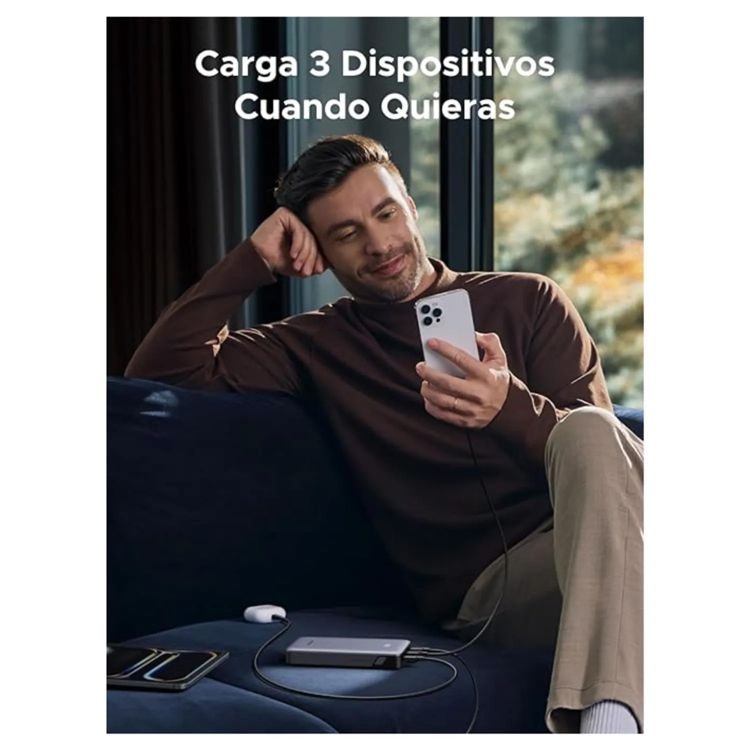 2C1A triple interfaz (dual USB-C+USB-A), puede cargar 3 dispositivos al mismo tiempo. Soporta cargar la fuente de alimentación y alimentar los dispositivos al mismo tiempo