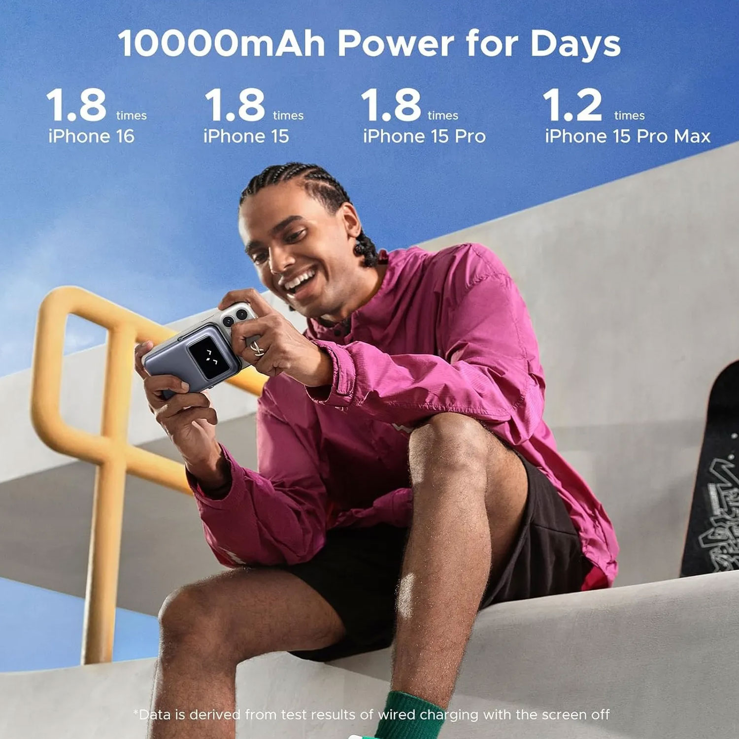 El UGREEN Uno Magnetic Wireless Power Bank PB572 está diseñado para cargar tu smartphone de forma rápida, conveniente y completamente segura. Gracias a su sistema magnético fuerte y estable, se acopla perfectamente a dispositivos compatibles con MagSafe, garantizando una alineación precisa para lograr una carga eficiente sin interrupciones.