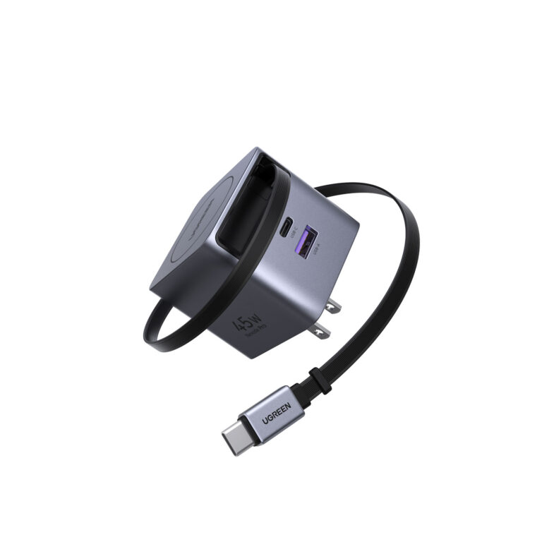 Cargador Ugreen 45W GaN con Cable Retráctil Gris X614 65821