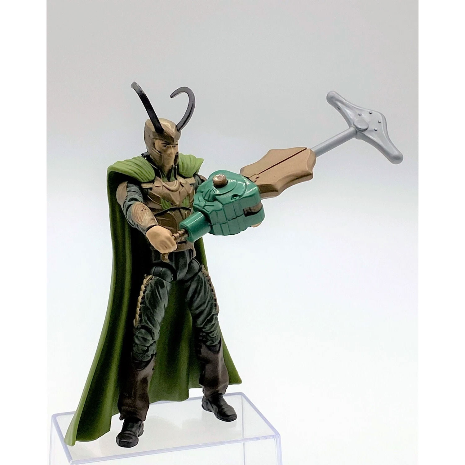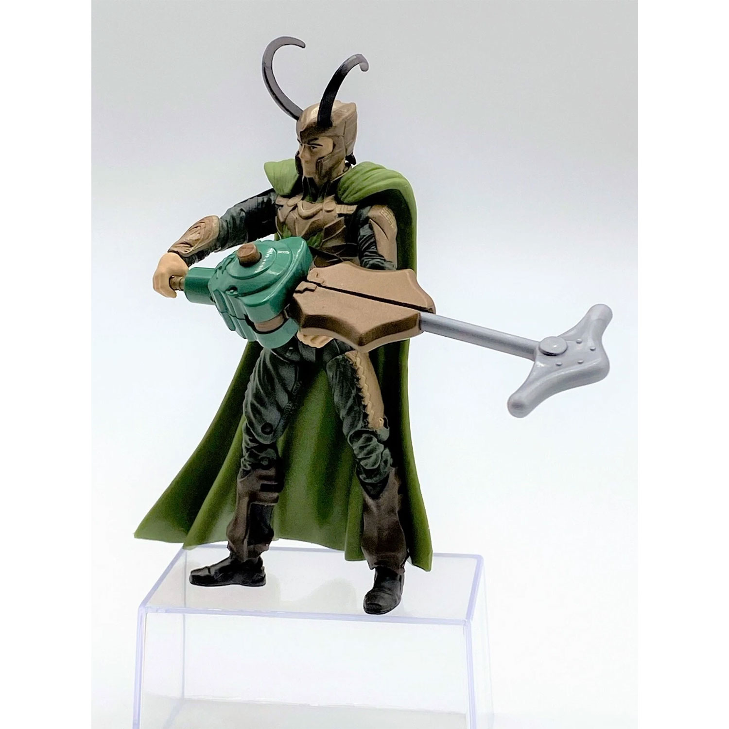 Desde las páginas de los cómics y el universo cinematográfico, King Loki llega con una apariencia majestuosa y temible como parte de la línea Thor: The Mighty Avenger. Esta figura representa a Loki como soberano, con una armadura imponente, capa real y su característico cetro.