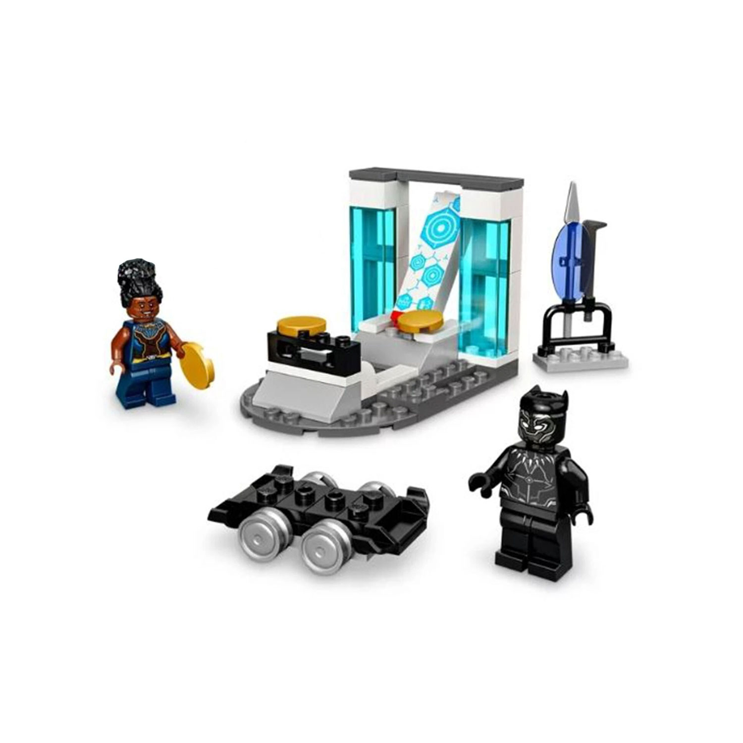 Este divertido set incluye minifiguras de Shuri y Pantera Negra, además de un laboratorio lleno de gadgets, armas de entrenamiento, una zona de pruebas y más. Ideal para que los niños exploren el mundo de la ciencia y la acción al estilo Wakanda.