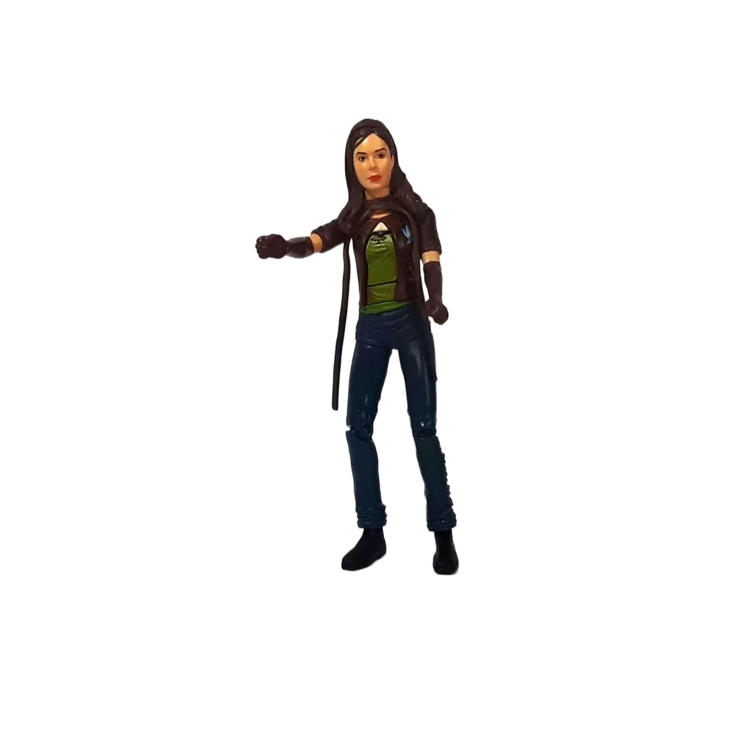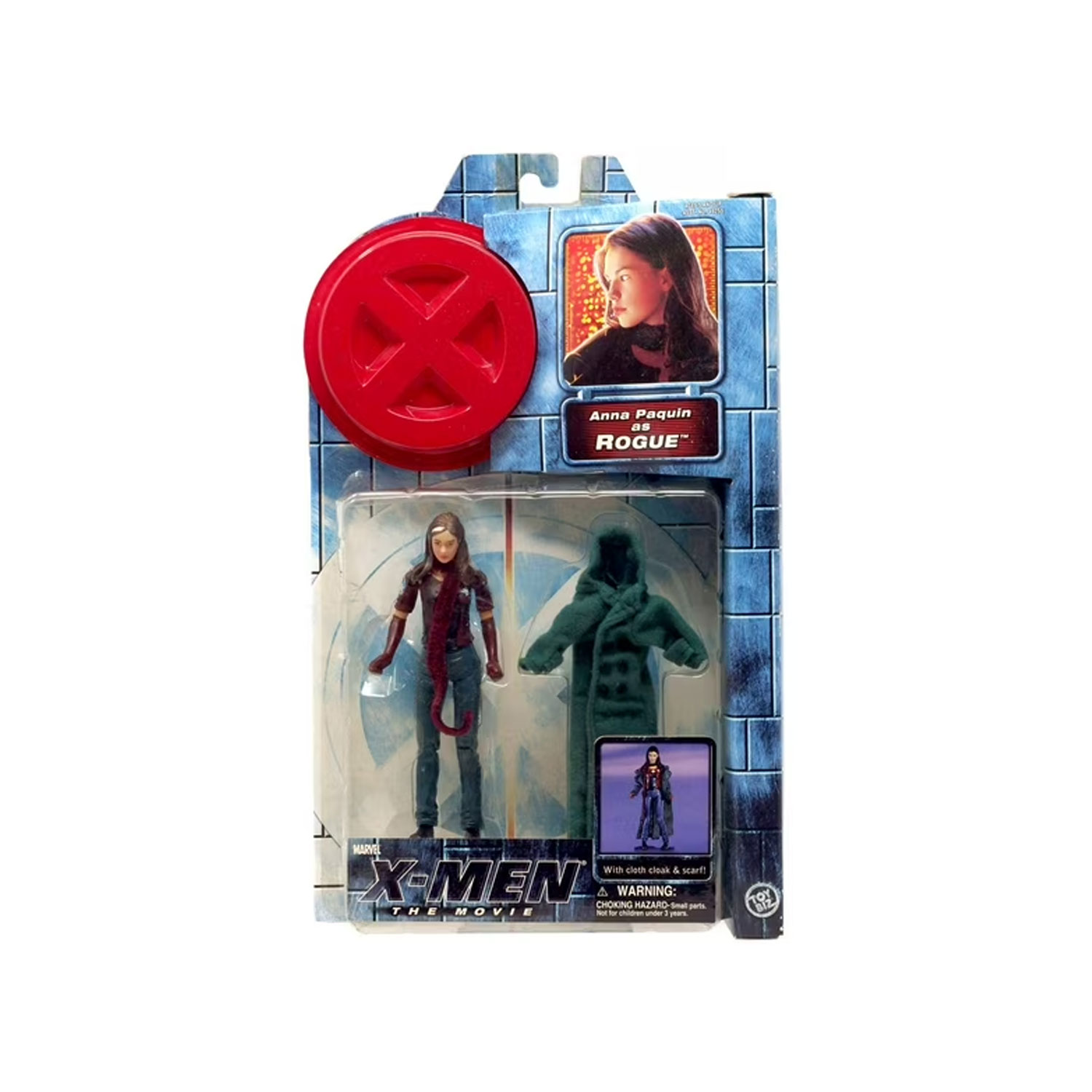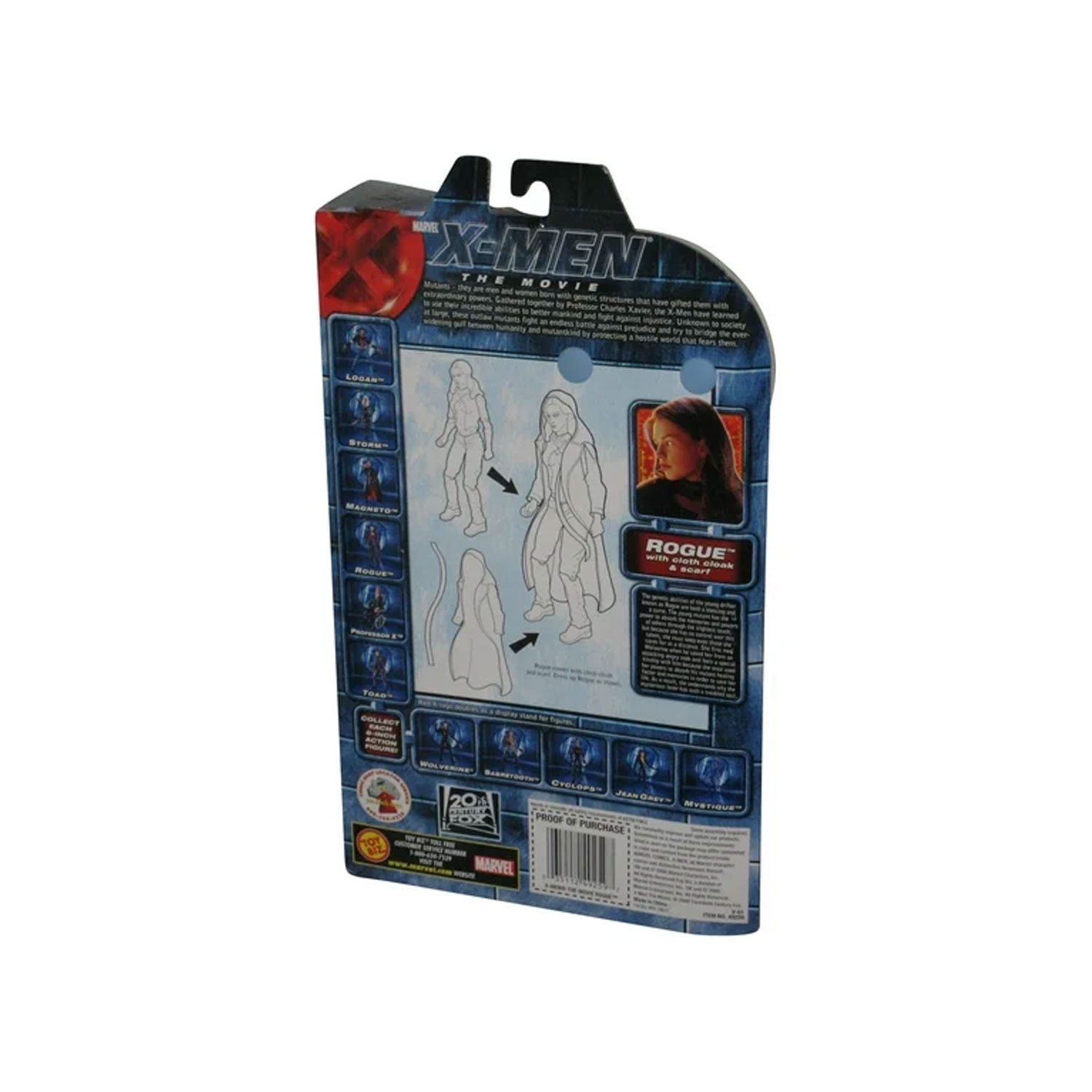 Inspirada en la película original de X-Men (2000), esta figura representa a Rogue, interpretada por Anna Paquin, en su versión cinematográfica. Fabricada por Toy Biz, esta pieza se lanzó como parte de la colección oficial de figuras de acción de la película, capturando fielmente el look juvenil y enigmático del personaje.
