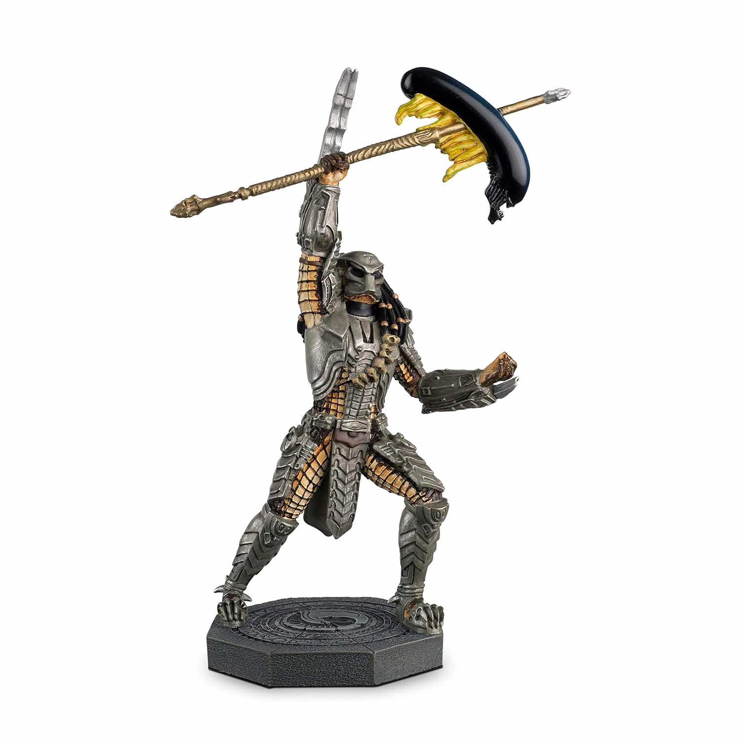 Lleva a casa a uno de los cazadores más icónicos del universo cinematográfico con esta figura de Scar Predator, parte de la prestigiosa colección The Alien & Predator Figurine Collection de Eaglemoss. Basado en su aparición en la película Alien vs. Predator (2004), Scar se presenta con su clásica armadura de caza, casco detallado, y su emblemática marca tribal en la frente.