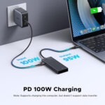 Incluye un puerto USB-C Power Delivery (PD) de hasta 100W, lo que permite mantener tu laptop o dispositivo cargado mientras utilizas el hub sin interrupciones.