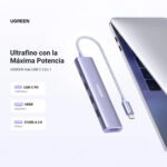 Hub Ugreen 5 En 1 USB-C HDMI 4K 3x USB-A 3.0 PD 100W CM478 35582 Plateado