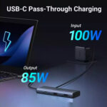 Su puerto USB-C Power Delivery (PD) de hasta 100W permite cargar laptops, tablets o smartphones de manera rápida y segura, mientras usas el resto de funciones del hub.