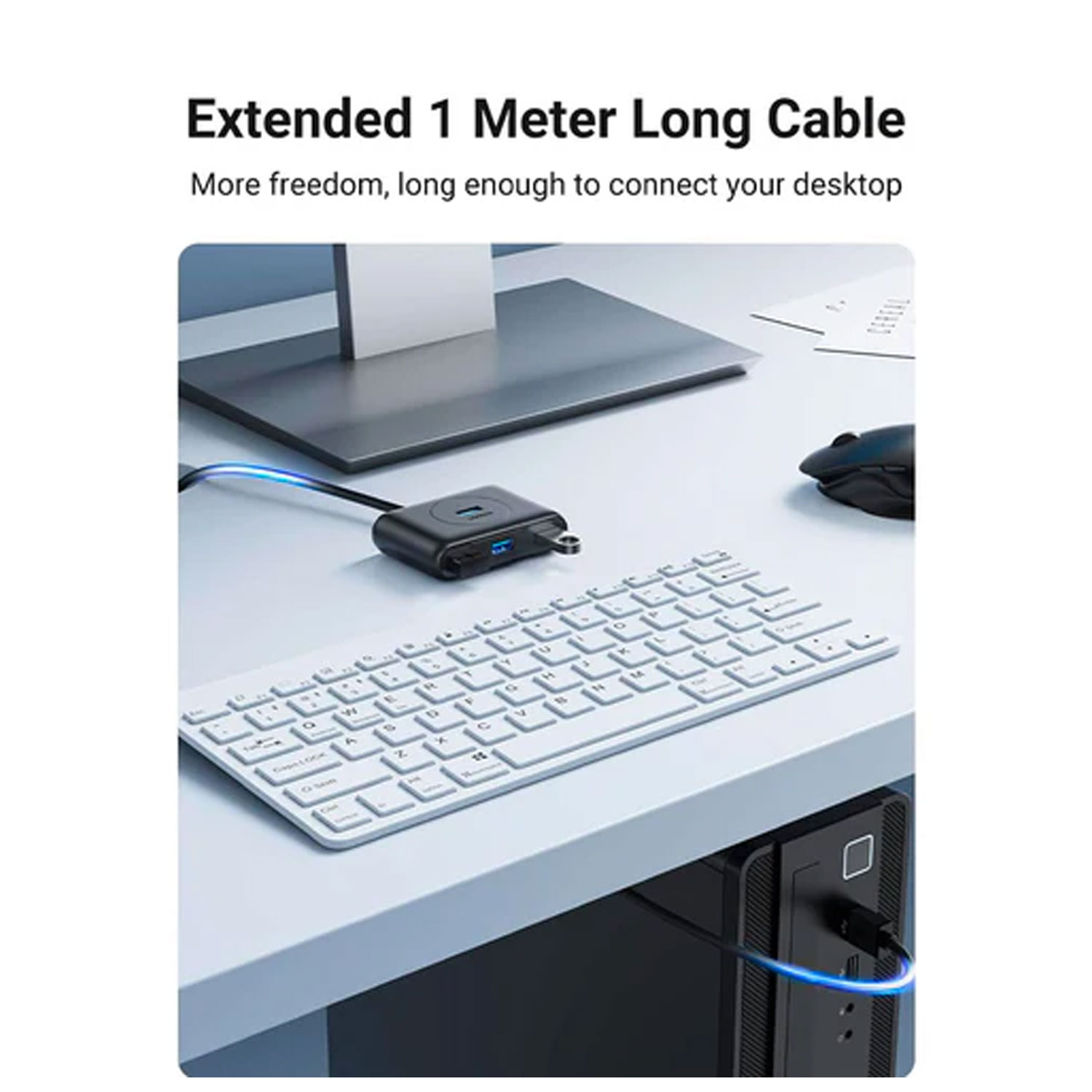 El Hub UGREEN USB 3.0 A con USB-C a 4 puertos Hub es una solución versátil para expandir la conectividad de tu computadora, laptop o dispositivo compatible. Permite conectar múltiples dispositivos y accesorios USB al mismo tiempo, mejorando tu productividad y facilitando la transferencia de datos y uso de periféricos en espacios de trabajo o estudio.