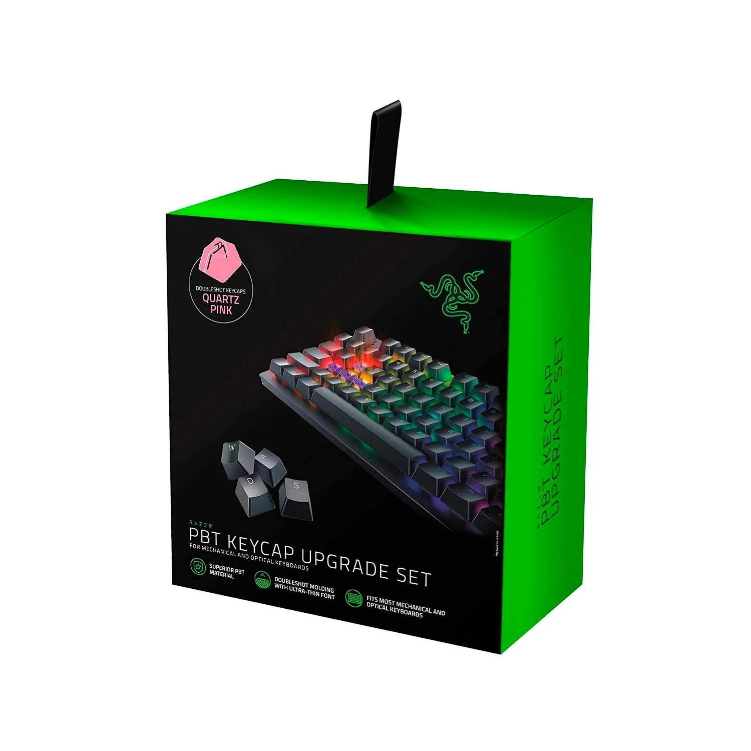 DURABILIDAD DOBLE DISPARO Es hora de ponerse duro y asegurar sus llaves para la victoria con el conjunto de actualización de teclas Razer PBT Keycap. Diseñadas para soportar los juegos más intensos, estas teclas PBT de doble disparo no están aquí para ganar una batalla, están aquí para ganar la guerra.