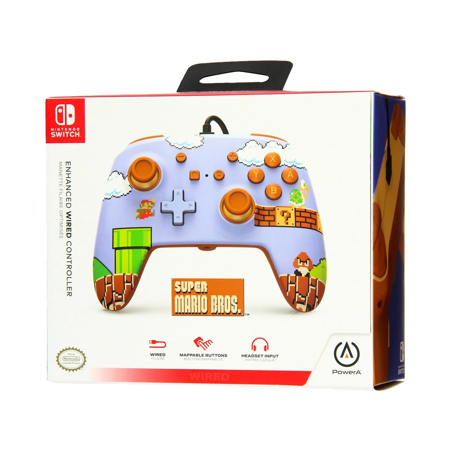 Juega tus juegos favoritos de Nintendo Switch * con estilo con este controlador con cable mejorado PowerA oficial con diseño de Super Mario Bros., conector de audio de 3,5 mm y dos botones de juego avanzados asignables.• Diseño ergonómico con distribución de botones de Nintendo Switch
