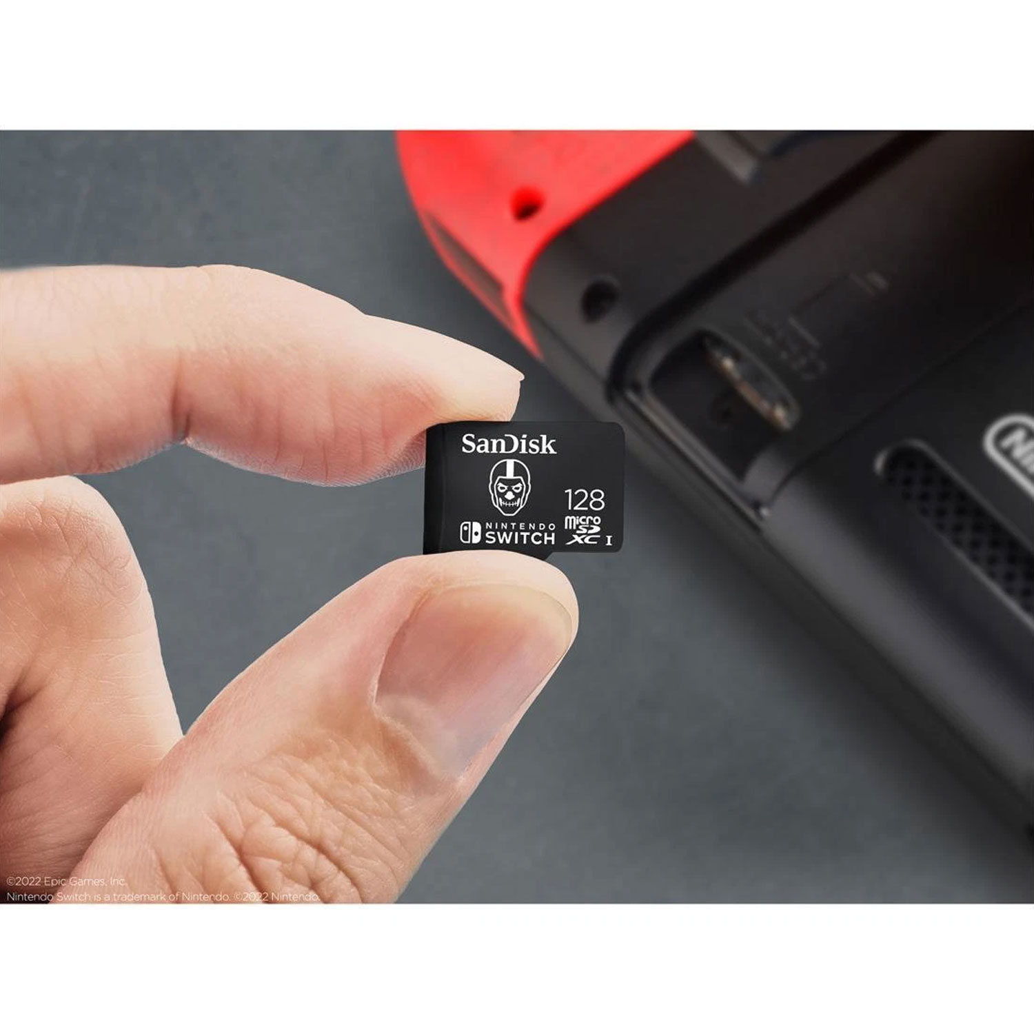 La tarjeta SanDisk microSDXC Fortnite Edition está diseñada especialmente para consolas Nintendo Switch, ofreciendo rendimiento confiable y espacio adicional para juegos, contenido descargable y actualizaciones.