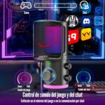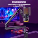 El Fifine AmpliGame TAM6 es un micrófono USB condensador diseñado especialmente para gamers y streamers que buscan una buena calidad de sonido sin gastar demasiado. Destaca por su diseño atractivo con iluminación RGB, su facilidad de uso y su buena cancelación de ruido. Incluye un control de volumen y un botón de silencio, además de un dial para ajustar el balance entre el sonido del juego y el chat. Aunque no es un micrófono profesional de alta gama, ofrece una excelente relación calidad-precio y es una opción muy popular entre los usuarios que están empezando en el mundo de los streamings y grabaciones de voz.