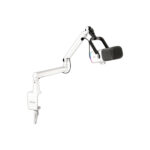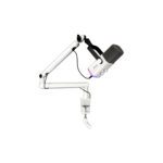 Su acabado en color blanco combina estilo y practicidad. El micrófono está diseñado para colocarse fácilmente en escritorios, estaciones de streaming o estudios pequeños, aportando estética sin sacrificar funcionalidad.