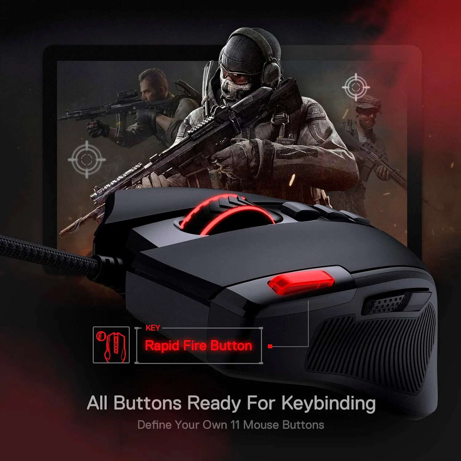 Pentakill, 5 niveles de DPI : equipado con 5 niveles de DPI redefinibles (predeterminados: 500/1000/2000/3000/4000), fácil de cambiar entre las diferentes necesidades del juego. También está disponible la opción de demanda dedicada de opciones de DPI entre 500 y 8000 para que la procese el software.