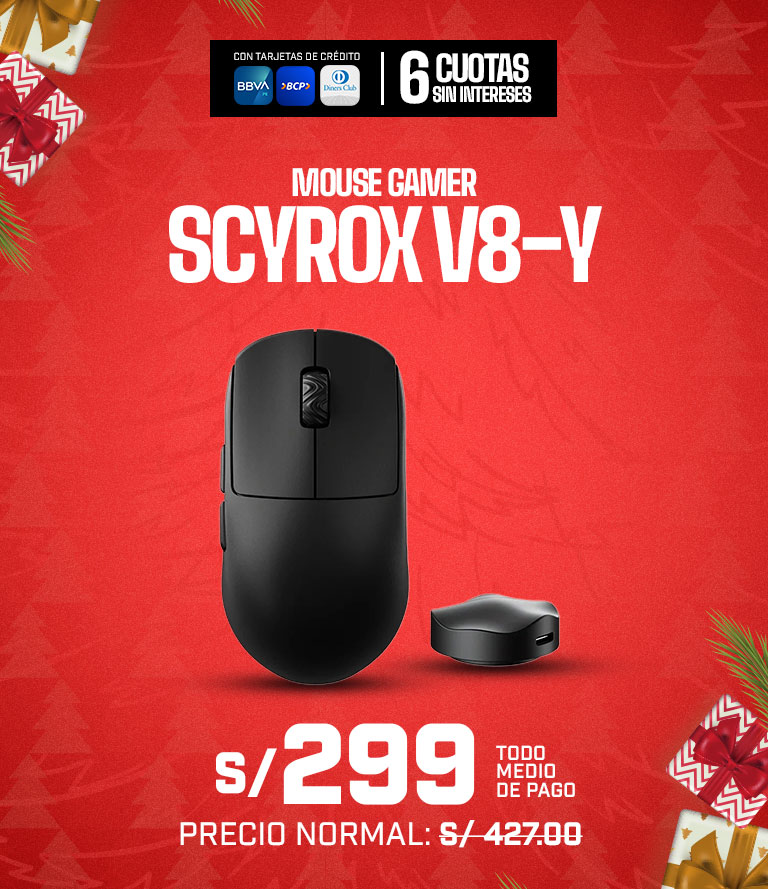 Mouse Gamer Scyrox V6 Inalambrico USB-C 30K DPI Negro